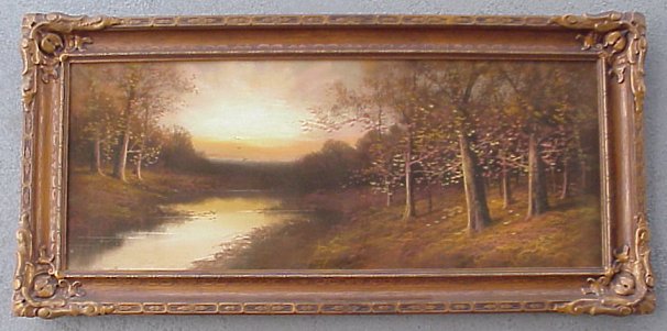 | 69 | SMEDLEY, Will Larymore, (American, 1871-1958): Wooded landscape, O/C, 16" x 27 1/2", SLR, dated 03, encased in original elaborate deep dish gilt molding with foliate motif. Est. $1200/1800** |