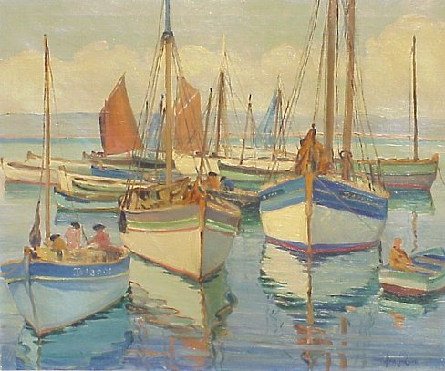 | 74 | JUDSON, Alice, (American, 1876-1948): "Fishing Boats", O/C, 20" x 24", SLR, encased in original period gilt molding, artist's label affixed verso with title. Est. $2000/4000** |
