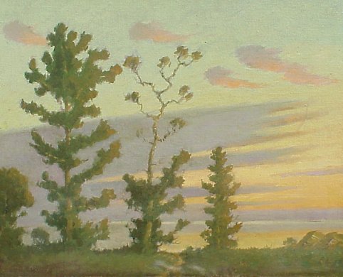 | 104 | MOORE, Benson Bond, (American, 1882-1974): "Sunrise on Chesapeake", O/CB, 16" x 20", SLL, encased in period carved molding. Est. $1200/1800** |