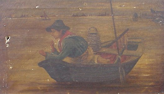 | 86 | EARLY 20TH C AMERICAN ILLUSTRATOR'S SCHOOL, O/C: Depicts Dutch girl reading letter and dreaming of taking the steam ship to America, 32" x 25", no visible signature. Est. $500/700** |