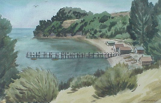| 121 | LEVY, Nat, (American, 1896-1984): The Harbor Scene with Pier, W/C, 13" x 20 3/4", SLR. Est. $600/800** |