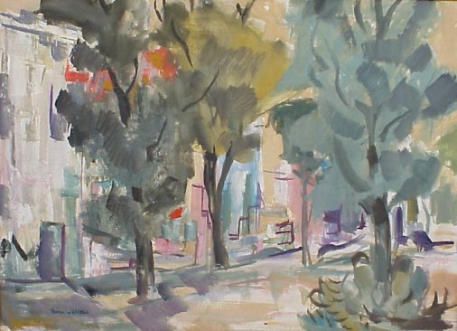 | 124 | WALTERS, Ruth, (American, 20th C): Impressionist village landscape, O/C, 26" x 36", SLL. |