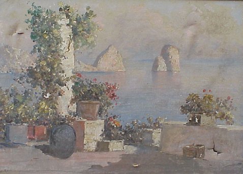 | 128A | MARESCA, Ilgo, (Italian, 20th C): View of Capri, O/C, 19 1/2" x 27 1/2", SLL, encased in period frame. Please note damage to canvas. |