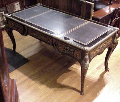 SOUTH AFRICAN STINKWOOD CHIPPENDALE DESK AND CHAIR: Block front knee hole desk, carved paw feet. 30" h. with a generous 54" x 39" surface. | 350 |