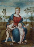 MINIATURE W/C ON IVORY OF THE MADONNA & CHILD WITH ANGEL: 4" x 3", no visible signature. | 100 |