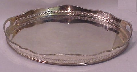 SILVERPLATED RETICULATED TRAY: Reticulated gallery on a fine oval tray. 20"l. Marked with crossed keys. | 100 |