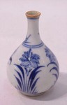 MINIATURE BLUE AND WHITE KOREAN BOTTLE VASE: Identified as a Korean bottle vase. With highly stylized flowers. 3"h. | 140 |