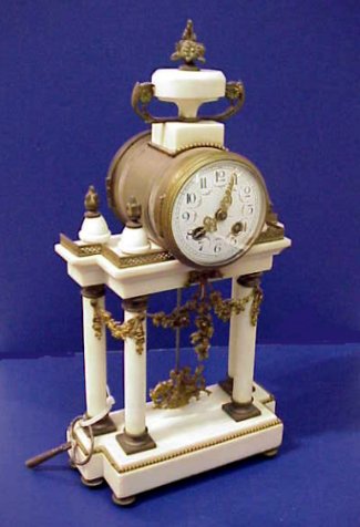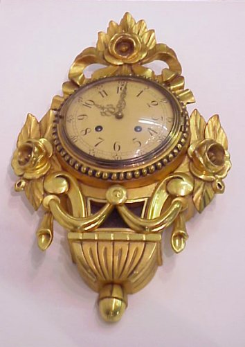WESTERSTRAND GILT WOOD CARTEL CLOCK: Key wind clock in a carved ribbon crested case. Dial is marked Westerstrand Sweden, key wind. 20"h, 7" dial. | 175 |