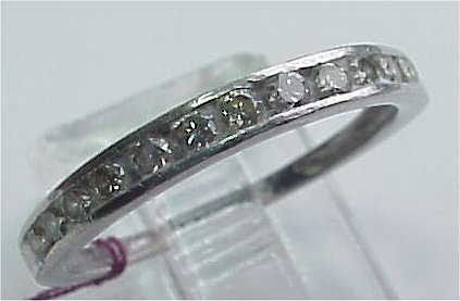 DELICATE DIAMOND PLATINUM BAND: Approx. 1/2ctw of diamonds channel set in platinum band, size 5 1/4. | 175 |