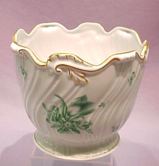 HEREND "APPONYI" CACHE POT: Green decoration on pure white. 6"h, 7 3/4" dia. Marked "Hungary". | 120 |