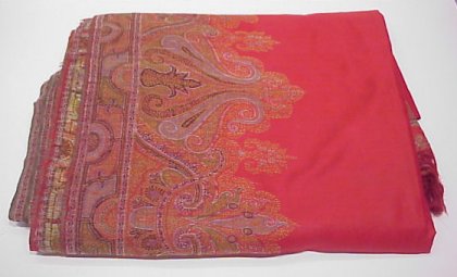 VINTAGE PAISLEY SHAWL: Red center with decorated border. Approx. 5'4" x 10'10". No holes. | 250 |