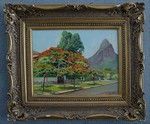 FORMENTI, Gastao, (Brazilian, 1894-1974): "Flamboyant, Rodrigo de Freitas Lake, Rio de Janeiro", O/Wood panel, 10 1/2" x 13 3/4", signed lower right and dated 1948, pencil inscription verso, encased in slightly damaged gilded gesso frame. Formenti not only was a well known painter in Brazil, he recorded over 150 songs as a musician. He also worked as a stained glass artist. | 175 |