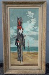 FORTESS, Karl, (American, 1907-1995): Modernist beach scene with markers and buoys, O/C, 40" x 20", SLL. Fortess studied at the AIC, ASL, Woodstock School. Exhibited at Salons of America, Woodstock AA, WMAA, PAFA, Corcoran, Carnegie, and the NAD. He was awarded the Guggenheim Fellowship in 1946, the Childe Hassam Fund purchase award in 1952, and many other juried prizes during his extensive career. In addition to working as a WPA artist, Fortess taught at the ASL, Brooklyn Museum Art School, LSU, and BU, to name a few. | 1,000 |