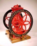 ENTERPRISE MFG. COFFEE GRINDER: Double wheel grinder. We do not know the number but the diameter of the wheels is 11", the piece is 15"h. overall. Mounted on an oak base. In full working order. º | 275 |