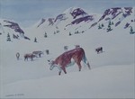 FIENE, Ernest, (American, 1894-1966): Western mountain landscape with deer, O/C, 27" x 41 3/4", signed lower right and verso, dated 1920. Condition- Patches visible verso, inpaint, paint loss and instability in the margins, several scrapes. Please do not bid if you have questions regarding condition. | 600 |