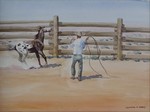 REEDY, Leonard Howard, (American, 1899-1956): "In the Corral", W/C on board, 8 1/2" x 11", signed lower right, titled verso, encased in Findlay Gallery frame with label affixed verso. | 550 |