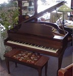 MAHOGANY BALDWIN PETITE BABY GRAND PIANO: Sold with matching bench and needlepoint velvet bench pillow. 55" l. 51"w. | 1,000 |