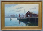 HALLAM, J.C., (American, 20th C): Lakeside landscape with cottage, O/Upson, 12" x 16", signed lower left, dated 21. | 120 |