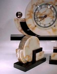 SCHATZ ELEXACTA ELECTRIC MANTLE CLOCK: Clock encased in a lucite case, pair of majestic deer on both sides, all on a two tier marble base. 13"h, 30"w. | 130 |