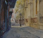LONGABAUGH, Charles Oglesby, (American, 1885-1944): "Pirate's Alley in Spring", W/C, 6" x 7", signed in pencil lower right, titled lower left, signed in W/C New Orleans, written in the mat "Signed for Lt. Perley? G Nutting Jr.". | 600 |