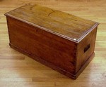 EARLY TRUNK: Applied molding around base and lid. Large dovetail construction. Really nice patina and warm color. 19"h, 39"w, 18 1/2"deep. | 200 |