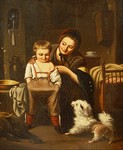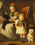 19TH C SCOTTISH ILLUSTRATION INTERIOR SCENE: With mother, child and dog, O/C laid on board, 19 1/4" x 16", no visible signature. Condition - Some separation of canvas, some repaired tears, craquelier throughout, several repaired tears in margins, in need of cleaning. | 275 |