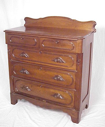 VICTORIAN WALNUT DRESSER: 2 over three drawer chest with applied foliate handles, 40''w. x 18''d. x 41''h.