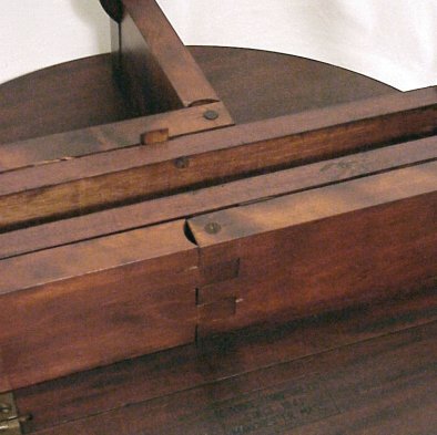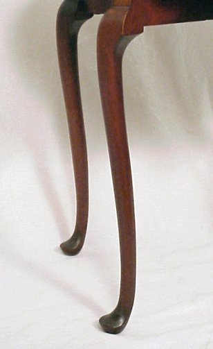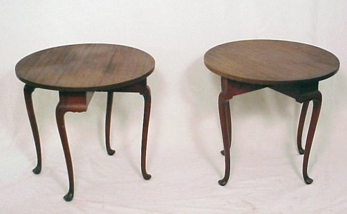 PAIR OF QUEEN ANNE STYLE DIMINUTIVE MAHOGANY DROP LEAF SIDE TABLES: Manufactured by C. Dodge of Mass. Each opens to a 24'' round table, approx. 9'' wide when leaves are down. Swing leg supports rounded drop leaves.