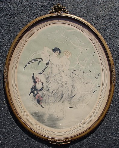 ICART, Louis, (French, 1888-1950): ''Seagulls'', Color Etching, 21'' x 16 1/2'' sight size, stamped Paris Windmill stamp lower left, #166 in pencil, pencil signed lower right, encased in original oval embossed frame, copyright 1926. Condition - Light overall staining, several spots of foxing. Good overall. Est. $1200/1800**