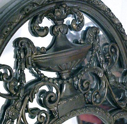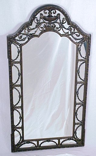 1920's ITALIAN WALL MIRROR: Featuring intricate wooden fretwork in and urn and swag motif. 54'' x 28''.