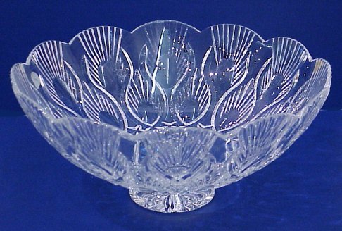 WATERFORD CRYSTAL PEACOCK CENTER PIECE BOWL FROM THE DESIGNERS GALLERY: Designed by Martin Croke from the Designers Gallery, Waterford Crystal, cut in Peacock design, 6'' H, no chips or cracks, signed with paper label and etched Waterford on the base.