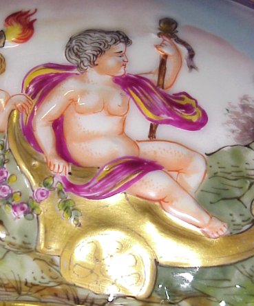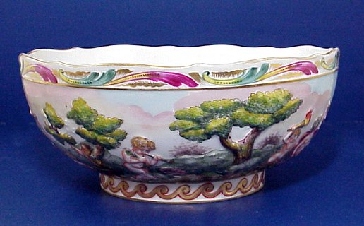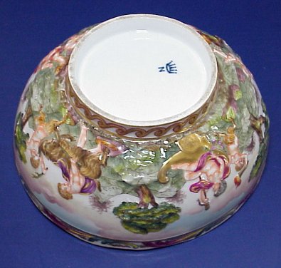 CHERUB DECORATED CAPO DI MONTE PORCELAIN BOWL: Raised design, 8 3/4'' dia., 3 3/4''h. Blue N and crown mark.