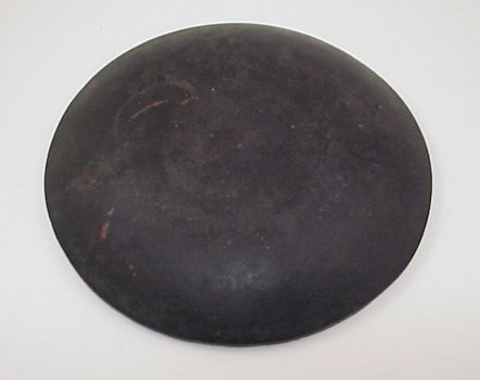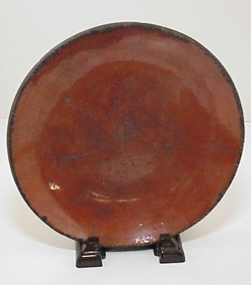 REDWARE PIE PLATE: Crimped rim, black glaze on the underside. Minor chips blend in with the rim. 8 7/8''.