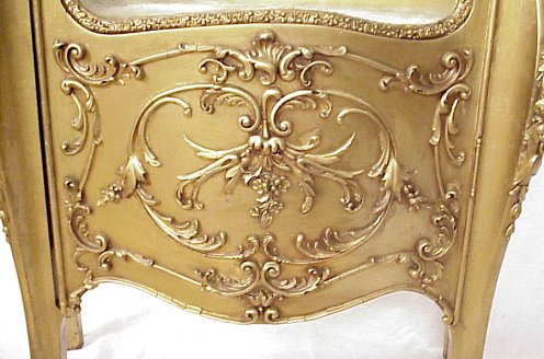 FRENCH LOUIS XV STYLE GOLD GILT CURIO: Serpentine glass sides with swell front, mirror back interior with velvet lining and glass shelves. Richly decorated in applied floral and foliate motif, carving to lower door casing and sides, gessoed ormolu to legs and feet. Highly ornate carved crest. Late 19th/early 20th Century manufacturer. 69 1/2'' h, 27'' w, 16'' d.