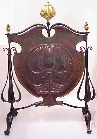 ART NOUVEAU COPPER, BRASS, AND IRON FIRE SCREEN: 30''H, 23'W.