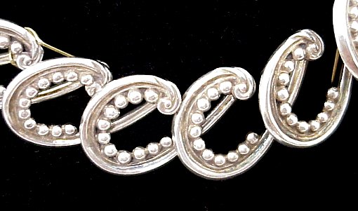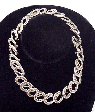 MEXICAN STERLING SILVER NECKLACE BY MARGOT: Beaded horse shoe links, approx. 15''l., marked Margot de Taxco 5334 Sterling Made in Mexico.