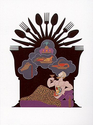 ERTE, (Russian/French, 1892-1990): Four out of seven, from the Seven Deadly Sins Suite, Serigraphs, each 26 1/4'' x 20 1/2'','', unsigned and not numbered. To include, ''Anger'', ''Avarice'',''Gluttony'' and ''Envy'', sold as a suite. Some minor dirt and staining in the margins, but overall good condition.