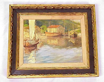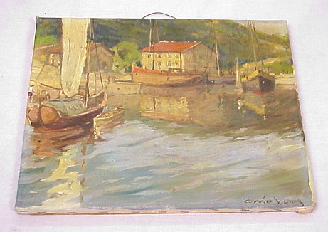 VILMOS, Eme, (Hungarian, 20th C): Harbor scene, O/C, 11'' x 14'', SLR.