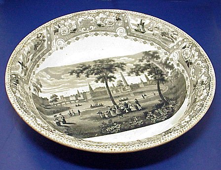 STAFFORDSHIRE BLACK TRANSFER ''CLYDE SCENERY'' BOWL: Large 13'' diam. bowl by Job & John Jackson, Ca. 1830's. Hairline visible on underside.