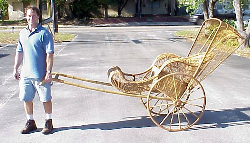 BAMBOO AND WOVEN WICKER RICK SHAW: Suitable for use and in good working order. Full adult size.