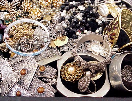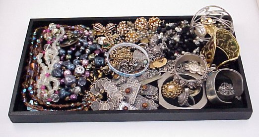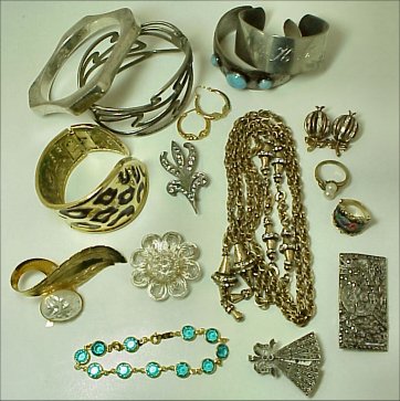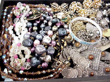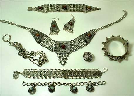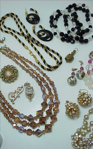 LOT OF ESTATE COSTUME JEWELRY: To include, Bedouin jewelry - ensemble, bracelets; necklaces with faceted, cloisonne and free form beads, cuff and bangle bracelets, one of Austrian enamel, signed pieces by Goldette, Trifari, Napier, Pennino, enameled pin from Czechoslovakia, couple of gold charms, etc. Sold as a lot.