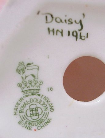 ROYAL DOULTON FIGURE ''DAISY'': HN 1961, 3 1/2''h. Style one, patterned pink dress.