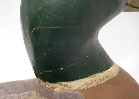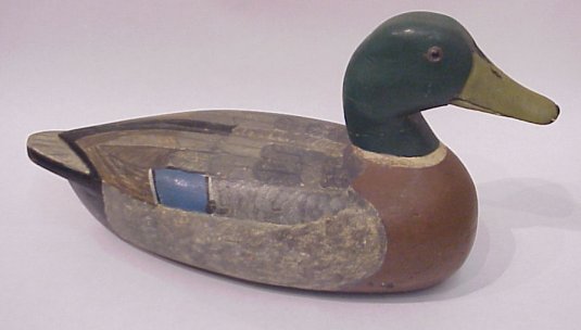 HAND CARVED DUCK DECOY: Weighted, glass eyes. 12''l.