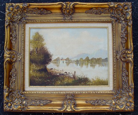 PAIR OF HIGH QUALITY DUTCH? OILS/CANVAS: Both signed lower right ''E.Earle?'', both depict riverside views with towns in the distance, both are encased in heavy gilded classically styled gesso frames, 12'' x 16''. Condition - Both need cleaning, minor wear to frames.