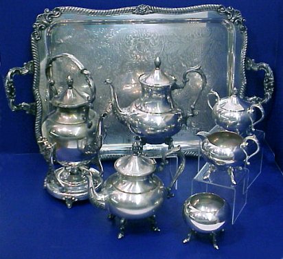 SILVER OVER COPPER SEVEN PIECE TEA SERVICE