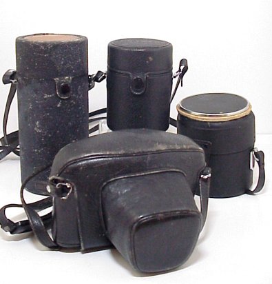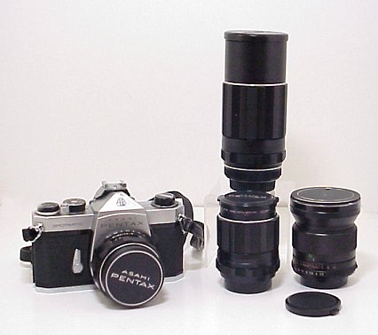 PENTAX SPOTMATIC CAMERA: Asahi Pentax camera sold with Vivitar 28mm lens No. 22316061 and two Pentax Takumar lenses. All in worn leather cases.
