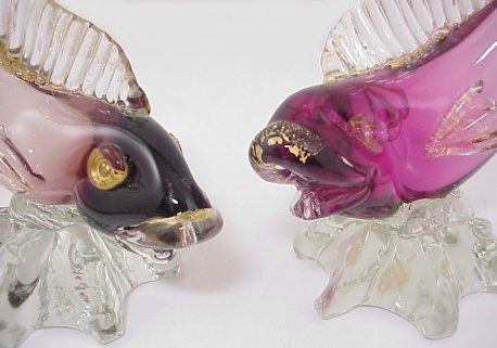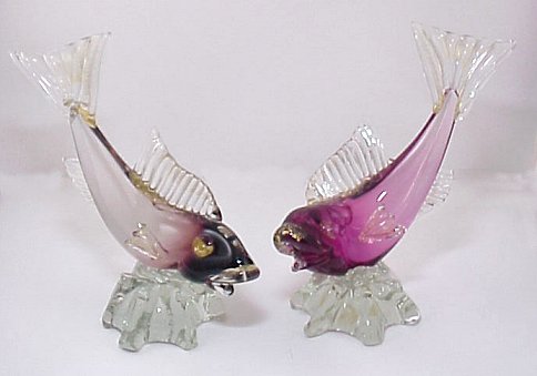 PAIR OF MURANO ART GLASS FISH: Cranberry fades into crystal. Approx. 10''h. Unsigned.