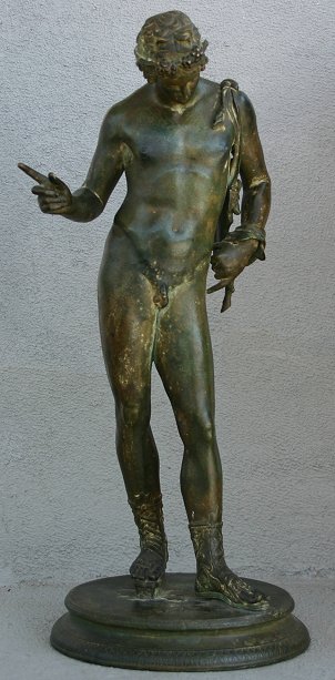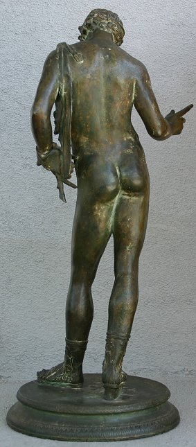 19TH C NEOCLASSICAL PATINATED MALE NUDE BRONZE: 24''h., no visible signature, early to mid 19th century work. Condition - Mineral buildup, average wear due to the age of this piece. Est. $1500/2500**