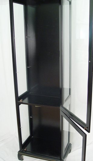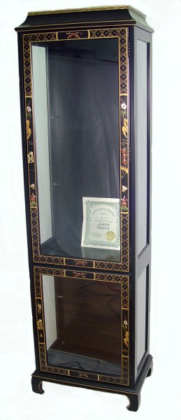 JASPER FURNITURE CHINOISERIE CURIO CABINET: Upper and lower glass front doors. 5'11''h, x 21'' x 13''.