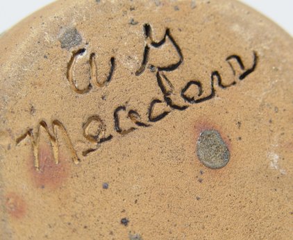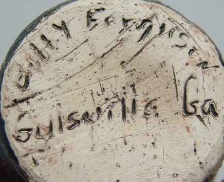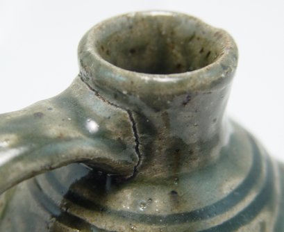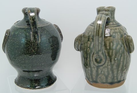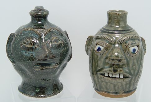 TWO SOUTHERN FOLK ART HEAD JUGS BY MEADERS AND FERGUSON: A green jug with very prominent teeth by the late A.G. Meaders and a green jug by Billy Ferguson of Gillsville Georgia. Each approx. 6''h.
